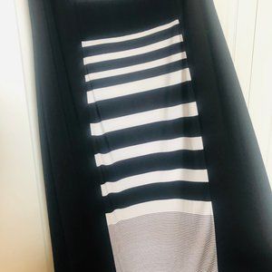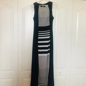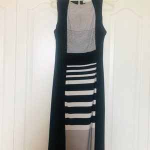 Liz Claiborne- Solid Maxi With Stripes Along the front and back of dress White, Black Perfect For Everyday Wear or for a special occasion.
