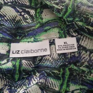 Liz Claiborne Colorful Button Front Tie Neck Long Sleeve Sheer Top, Sz XL