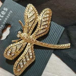 NEW with tags Vintage Liz Claiborne gold tone brooch pin. Dragonfly