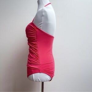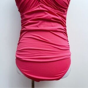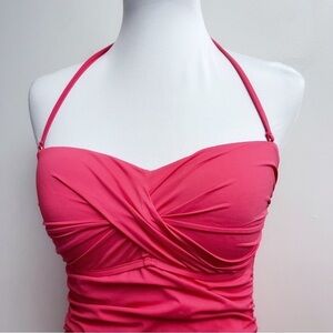 Liz Claiborne Coral Ruched Twist Top Halter One Piece Swimsuit Size 10