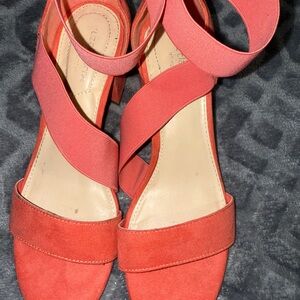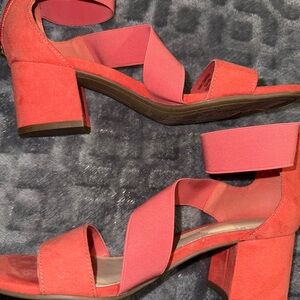 Chic coral heels with stylish straps. Perfect for adding a pop of color.