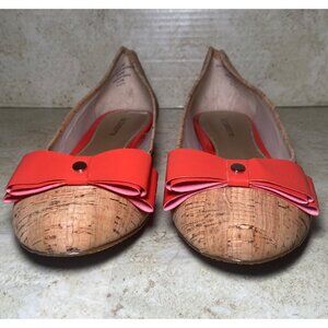 Liz Claiborne Cork-Style Flats Red Bow Accent Casual Comfort Workwear Holiday