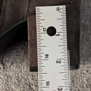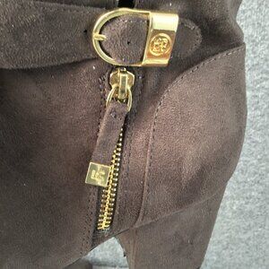 These boots are beautiful and that chocolate brown is a winner. It has a very high end look. 2.5" Block Heel. Zip closure. Gold tone accent hardware. Memory Foam.