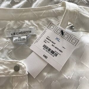 Liz Claiborne Cotton Semi-Sheer Long Sleeve Layering Jacket Top Size XL White