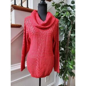 Liz Claiborne Women's Red 100% Polyester Cowl Neck Long Sleeve Sweaters Size L.