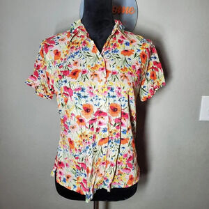Liz Claiborne Crazy Horse Floral Cotton Lightweight Button Down Shirt Size Small