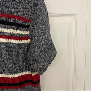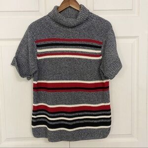Crazy Horse by Liz Claiborne, Turtleneck, Black, Gray, Red & White, Striped, NWOT, Short Sleeve Sweater. 100% cotton, size Large