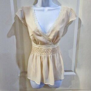 Liz Claiborne ✦ Cream Lace Chiffon Wrap Top ✦ Smocked Tie Back Vintage Style 6