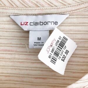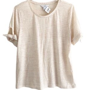 Liz Claiborne Cream Metallic Striped Tie Cuff Sleeves Pullover Top Medium