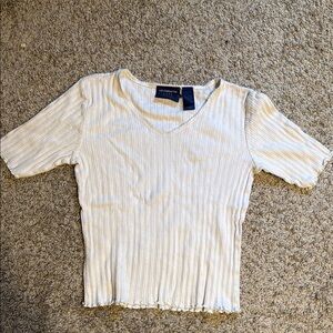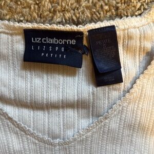 Liz Claiborne Cream Ribbed Fitted T-Shirt