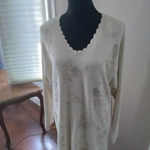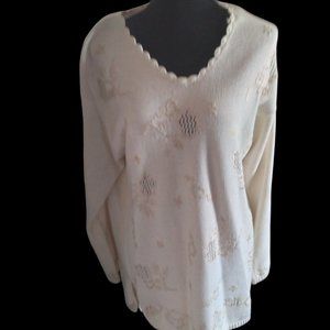 Liz Claiborne Cream V-Neck Sweater | Size XL