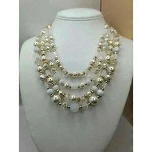 Liz Claiborne Cream Vanilla Goldtone Acrylic Beads Multi Strand Necklace