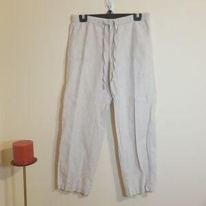 Liz Claiborne Cream classic linen blend Beachy Boho pants, 2 front pockets, 2 back button pockets, drawstring waist, size Small. Excellent pre loved condition, smoke free home, measurements in pics, ships next day. All eBay terms apply. All sales final. Thank you for checking out my items!