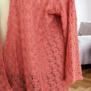Liz Claiborne Crochet Open Front Cardigan Sweater Pink Rose Petite PM