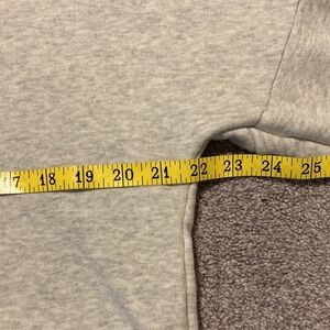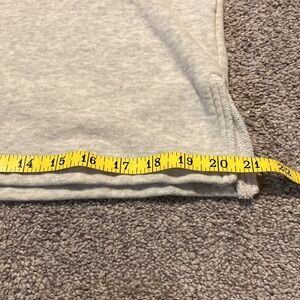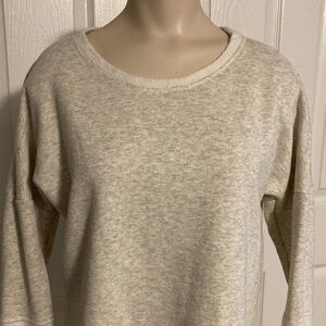 Liz Claiborne Cropped Sweatshirt in size L. 3/4 sleeves, 80% cotton, 20% polyester, gray and off white and side slits. Great pre-owned condition. Please see photos for approximate measurements and details. From smoke free and pet free home.