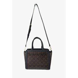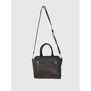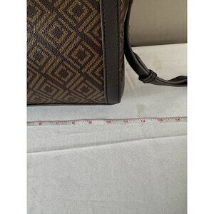 Liz Claiborne Crossbody Bag Top Handle Purse Mocha Brown Geo Print Medium Sized