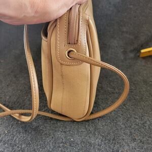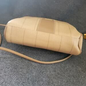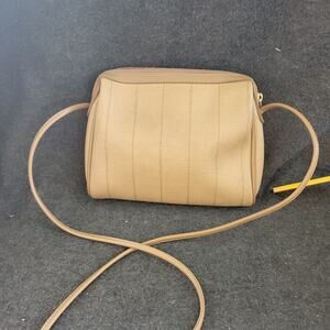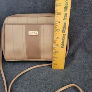 Liz Claiborne Crossbody Purse Cream and Tan Light Stripes Vegan Faux Leather