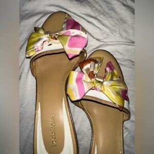 Liz Claiborne Cuba kitten mule heel Y2K bow leather spring summer slide on 10M