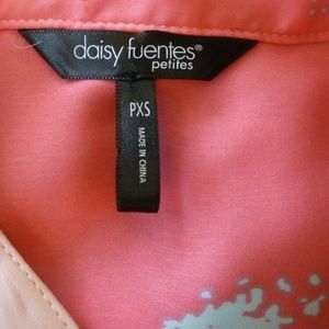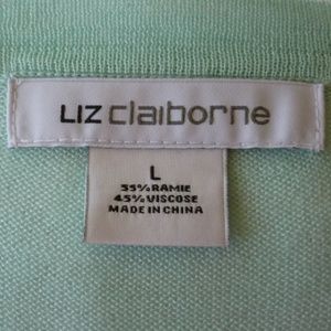Liz Claiborne & Daisy Fuentes: Liz Claiborne Robin Eggs Blue 3/4 sleeve, lightweight sweater, button down, v-neck, size large (fits small/med) - Daisy Fuentes, multi-coral colored silky sleeveless top, size XS (fits mannequin s/6-8). Sweater/NWOT: never worn, top/GW: worn once, great condition. Sold as a set.