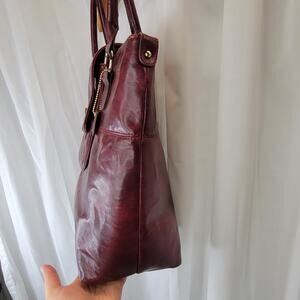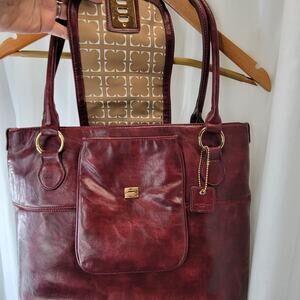 Liz Claiborne Dark Red Vegan Leather Oversized Tote w Tortoise and Gold Hardware