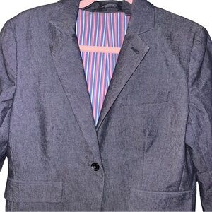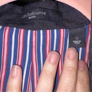 Liz Claiborne Denim Blazer with Red and Blue Striped Lining