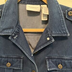 Size large Liz Claiborne ladies denim jacket. Color blue. Gently worn. Great condition.