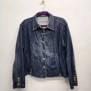 Liz Claiborne Denim Jacket Size XL Blue Medium Wash Cotton Trucker Pockets