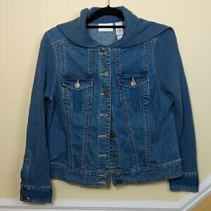 Liz Claiborne Denim Jean Jacket Knit Trim size 14