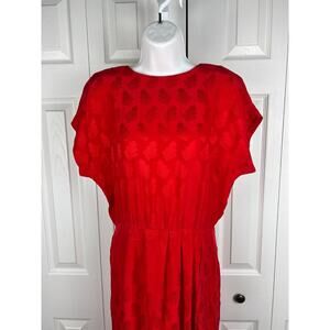 Liz Claiborne Dress 80s Silk Red Blouson Dress Back Button Size 6 Textured