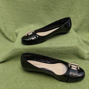 Brand new black dress flats with a stylish buckle. Size 9. Leather upper. Shoes can be used for a dressy occasion or worn with a cute pair of jeans.