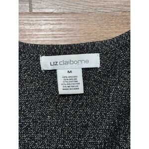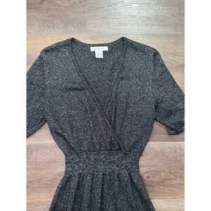 Liz Claiborne Dress Metallic Black Gold Short Sleeve V Neck Knee Length - Med