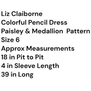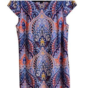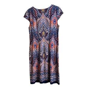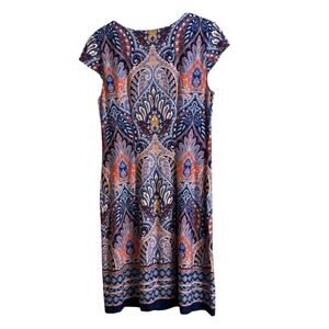 Liz Claiborne Dress Purple Multicolored Paisley Sheath Short Sleeve Travel Work