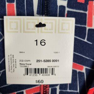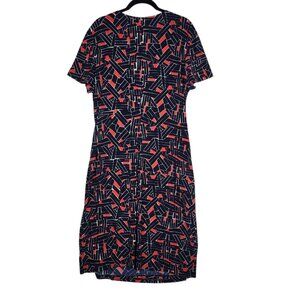 Liz Claiborne Dress Women's 16 Blue Red Faux Wrap Rusched Waist Office Career