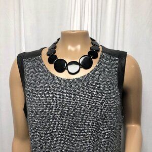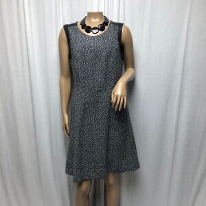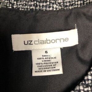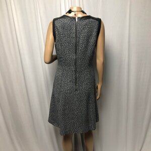 Liz Claiborne Dress Womens Size 6 Black White Tweed Sleeveless Leatherette Trim