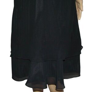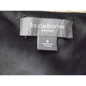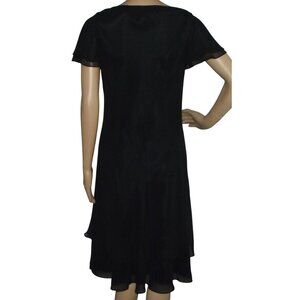 Liz Claiborne Dress Womens Sz 8 Black Drape Neck Flowy Midi Short Sleeve Elegant
