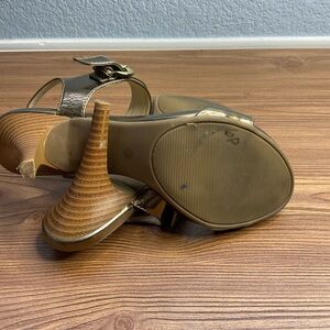 Liz Claiborne Elegant Gold Strappy Heels with ankle Buckle size 9