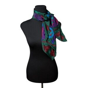 Liz Claiborne Elegant SILK Green and Purple Scarf