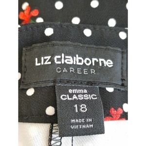 Liz Claiborne Emma Black White Polka Dots + Floral Pants, High Rise Size 18