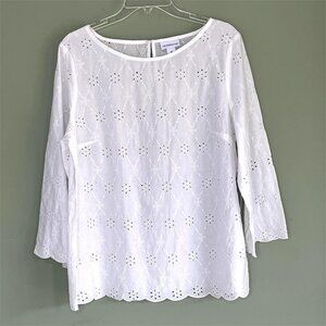 Liz Claiborne Eyelet Top sz M 3/4 Sleeve White Cottagecore Peasant Romantic NWT