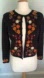 Has pretty embroidered flowers with wool covered buttons in the front. Has all the colors of Fall! Great sweater/cardigan, so cute!
