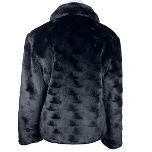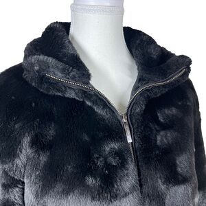 *Please note: item may appear slightly grey/silver in certain areas in photos, but it is all black with silver zipper. The grey/silver effect is due to light shining off of the fur as it has a slightly shiny texture.