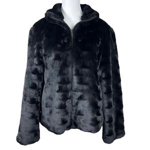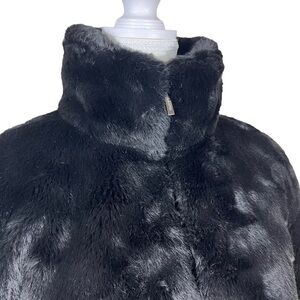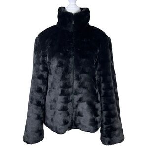 Liz Claiborne Faux Fur Black Collared Full Zip Jacket Pockets Size Small.
