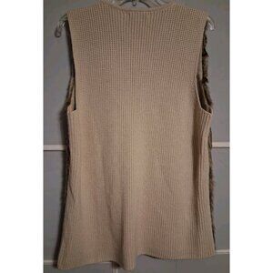 Liz Claiborne Faux Fur Open Front Sweater Vest Size L Brown/Tan Knit Grannycore