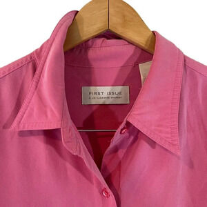 Liz Claiborne First Issue Pink Button Up Shirt Large Collared Front Pockets Top