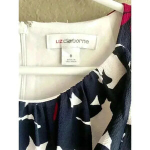 Liz Claiborne Fit and Flare Dress Women Size 8 White Floral Sleeveless