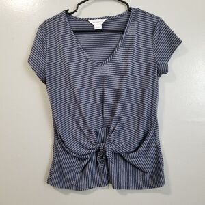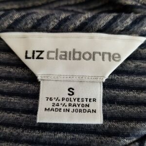 Liz Claiborne Fitted Stripe Blue Blouse Tie Front Women's Small