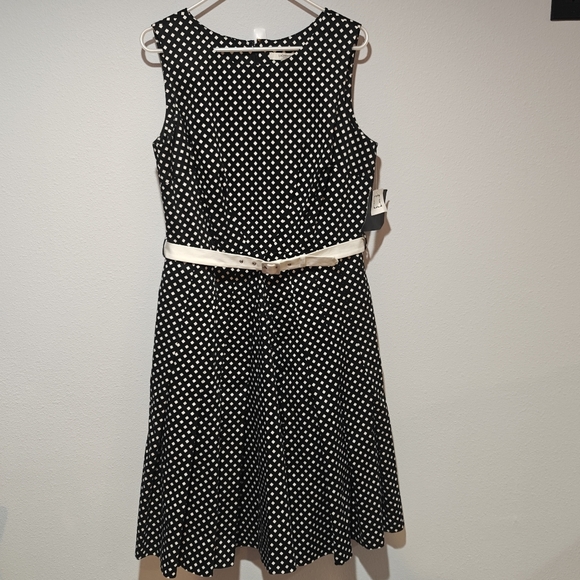 Liz Claiborne Flare Dress Size 14 Empire Waist NWT Diamond Polka Dots Flowy