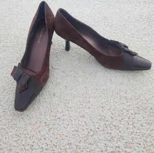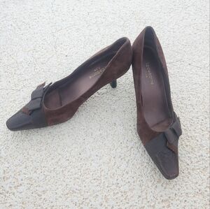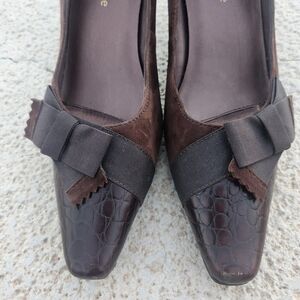 Liz Claiborne Flex Brown Suede/Crocodile Leather Pointed 3” High Heel w/Bow