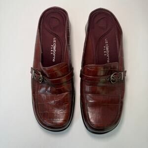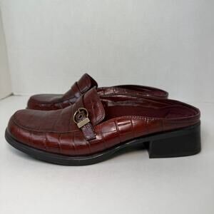 Liz Claiborne Flex Leather Croco Embossed Mule Slip On Shoes Women's Size 8