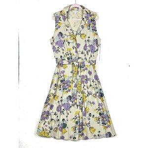 Liz Claiborne Floral Belted Dress Womens SZ 6 Fit & Flare Midi Sleeveless Linen
